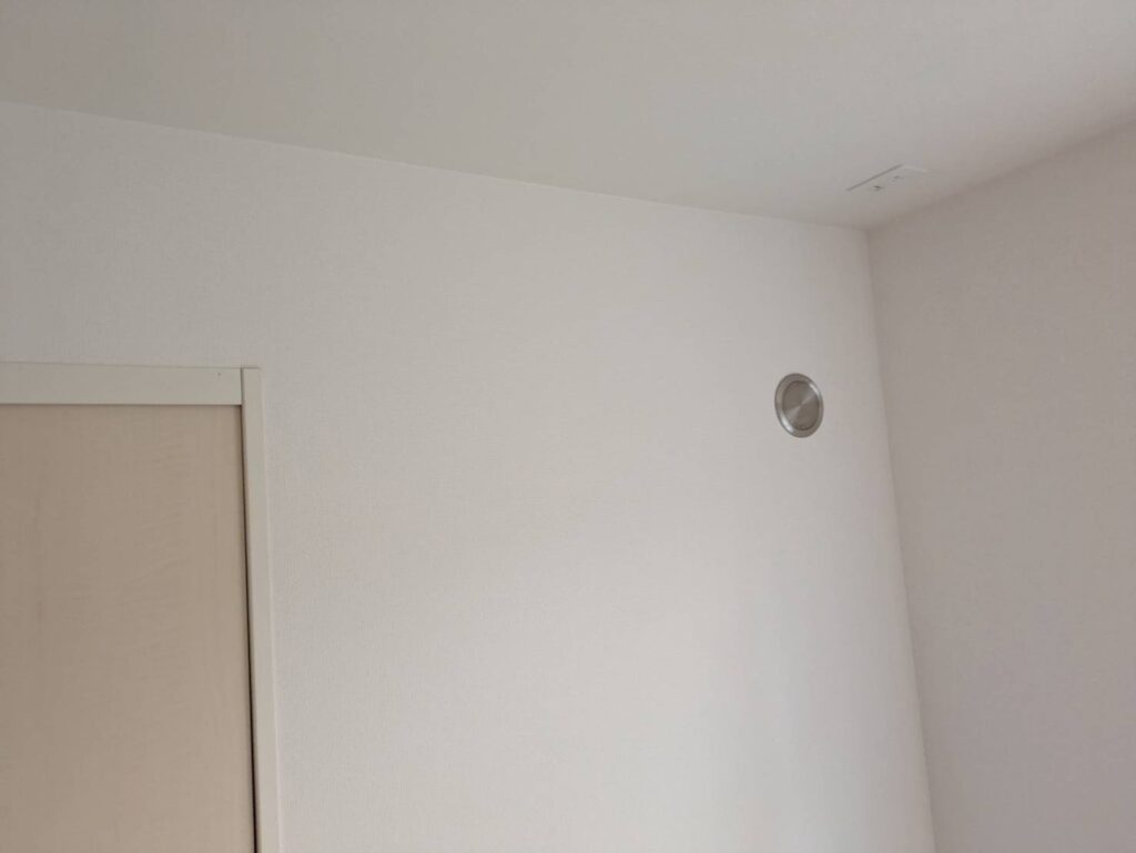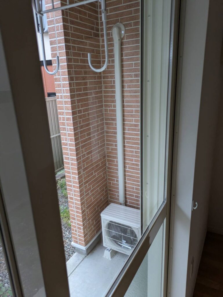 エアコン専用コンセントがあり、配管用の穴が開いている物件でのエアコン新設工事です。