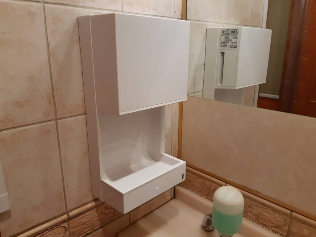 静岡市 ハンドドライヤー交換工事 2025年11月7日 Kurita コメントする ファミリーレストラン内、女子トイレのハンドドライヤーが使用できなくなってしまったとのことで、交換依頼を承りました。営業時間前にお伺いし、ハンドドライヤーを交換しました。 既設撤去 施工中 施工後 施工後